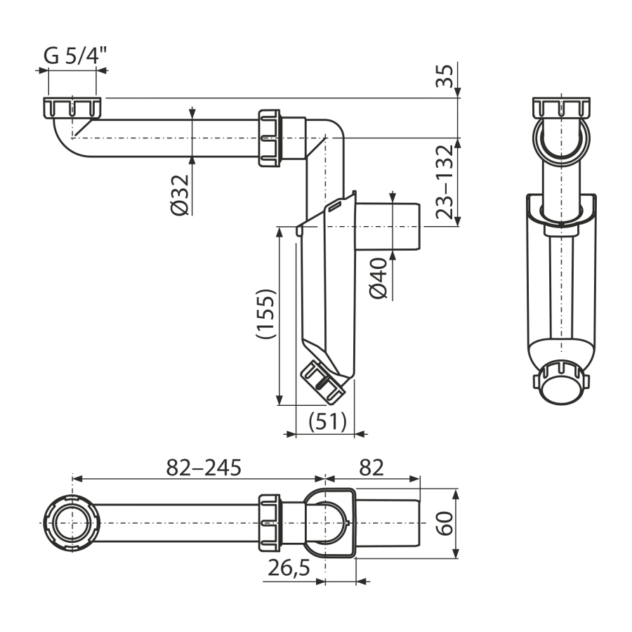 Alcaplast Сифон для мебели для умывальника c накидной гайкой 5/4" DN 40 A43S-DN40